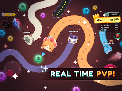 Bertarung dengan kucing lain di battle royale dan bersaing untuk mendominasi papan peringkat. Jadilah kucing terpanjang dan hancurkan lawanmu seperti cacing!