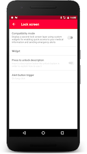 Tampilan dan akses informasi medis Anda dari layar kunci dimungkinkan melalui layanan aksesibilitas untuk mengaktifkan dan itu adalah bagian dari fitur inti aplikasi. Setelah diaktifkan, layanan aksesibilitas menampilkan widget di atas layar kunci Anda. Widget ini membantu penyandang disabilitas, atau first responder dalam keadaan darurat, untuk mengambil tindakan dan mengakses data medis.