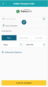 · Rencanakan perjalanan Anda untuk cara terbaik untuk pergi ke dan dari Stadion Optus.