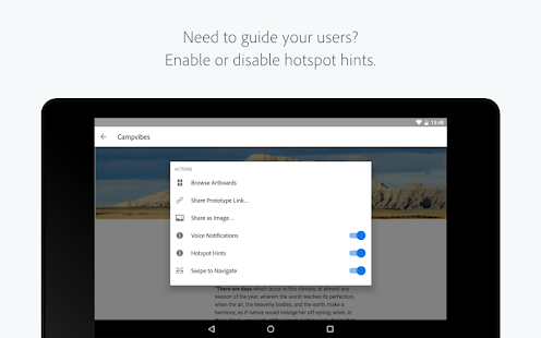 Hilangkan tebakan dengan mempratinjau desain Adobe XD Anda lengkap dengan transisi pada perangkat asli, secara real time melalui USB (khusus macOS) atau dengan memuatnya sebagai dokumen cloud.