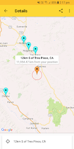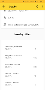 • Lihat daftar kutipan terdekat dengan episentrum (tersedia untuk beberapa acara di penyedia USGS)