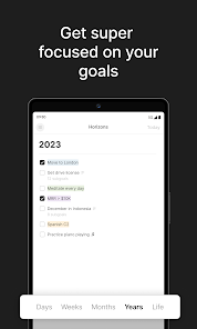 Timestripe adalah perencana unik dengan kerangka waktu yang fleksibel. Merencanakan tujuan harian, mingguan, bulanan, tahunan, dan seumur hidup memungkinkan Anda untuk berpikir secara strategis, memiliki visi yang jelas, dan fokus pada hal-hal yang benar-benar penting bagi Anda. Kami menyebutnya sistem perencanaan Horizons.