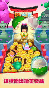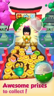 Just drop gold coins onto the pusher, doze piles of prizes your way, and collect coins and prizes that get pushed off the end of the pusher. Push them into the moving bucket to revolve the slot and trigger special events. 777 in a row? That's the JACKPOT! 3 Gashapon in a row? You win a lucky reward, a prize will drop onto the pusher. So watch for the lucky bucket!