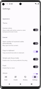 QR & Bar Code Scanner Plus adalah aplikasi pemindai sumber terbuka untuk setiap perangkat Android. ni menggunakan perpustakaan pemindaian ZXing dan kompatibel dengan desain Material-You terbaru di perangkat Android 12+ dengan tema yang dapat diubah dalam pengaturan untuk perangkat baru dan lama.
