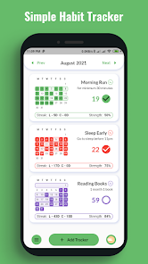 Tetap termotivasi dengan melihat kebiasaan Anda tumbuh dalam sekejap. Anda dapat melihat data bulan ini langsung di layar beranda, tidak perlu membuka layar lain. Lacak semuanya dengan mudah, rutin, kecanduan, kebiasaan buruk, tujuan, apa pun yang biasanya Anda lakukan dengan pelacakan kalender tradisional.