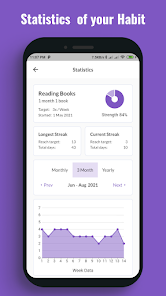 Dapatkan lebih banyak wawasan dari data kebiasaan Anda melalui statistik, bagan, grafik, dan target mingguan kebiasaan Anda. Lihat seberapa produktif Anda dengan kebiasaan/aktivitas yang Anda lacak.
