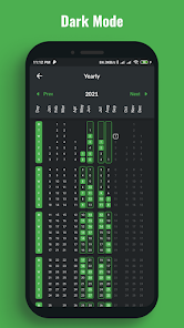 Anda juga dapat melihat data kebiasaan Anda sebagai tampilan tahunan. Ini diatur sehingga Anda dapat melihat bagaimana kebiasaan Anda dilakukan pada rentang mingguan. Tetap termotivasi dan lihat kebiasaan Anda tumbuh dari bulan ke bulan. dalam tampilan tahunan.