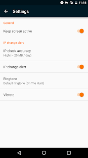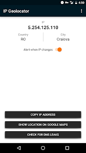 It also notifies you, if you have a broken VPN or proxy connection, when the country-code and/or IP address changes unexpectedly. You can set an alert with a special ringtone and or vibration.