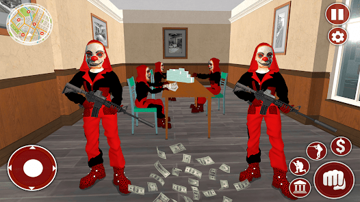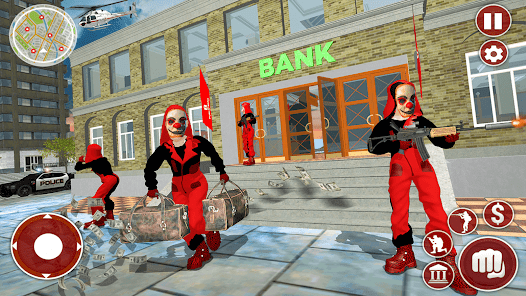 Untuk permainan penggelapan ini selama tugas pencurian, para penjahat merampok semua uang bank dengan regu mafia gangster badut jadi dengan bantuan permainan perampokan bank badut polisi mengejar permainan mengemudi mobil jangan biarkan gangster badut pergi karena mereka sebagai mengerikan penjahat memiliki rencana untuk melarikan diri dalam permainan perampokan bank mafia gangster nyata dan yang selalu menyelinap pergi dari permainan kejaran polisi yang sebenarnya karena mereka adalah bank mafia gangster nyata, perampok dalam simulator perampokan bank besar ini - permainan menembak perampokan bank.