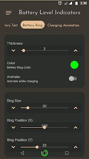 Battery level indicator app presents you many options for battery indicators. You can add circular battery ring or Power bars with many customization options. those allows you to completely control look and feel of power ring or power bar on your screen.
