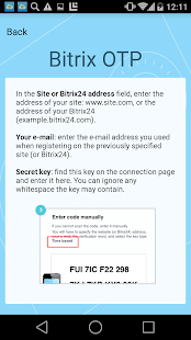 Lampiran Bitrix24 OTP menghasilkan kode sekali pakai untuk otorisasi dua tahap Bitriks24 dan produk lainnya Bitriks.Dvuhetapnaya otorisasi - ini adalah lapisan tambahan perlindungan ke rekening Anda dari hacking, dua faktor melindungi akses ke data Anda. Bahkan jika password Anda dicuri, hacker tidak akan dapat menggunakannya. Otorisasi berlangsung dalam dua tahap: pertama - ini adalah kata sandi Anda menguasai, dan yang kedua - kode satu kali yang Anda dapatkan dengan aplikasi ini. Memperkuat perlindungan data Anda, menginstal aplikasi pada ponsel Anda dan membuat kode satu kali untuk otorisasi. Aplikasi mendukung beberapa account pada saat yang sama, mendapatkan kode ini tersedia bahkan tanpa sambungan jaringan.