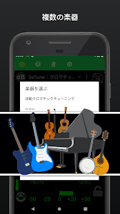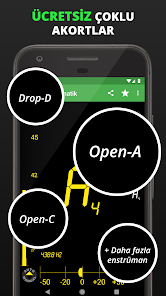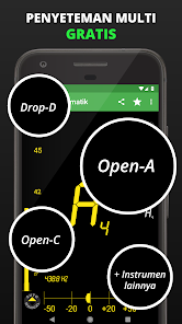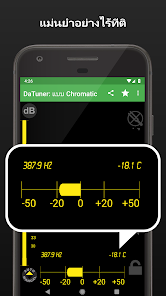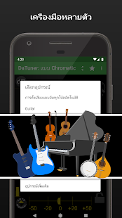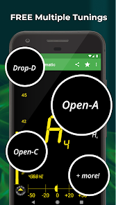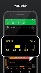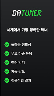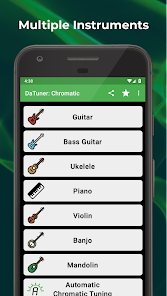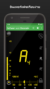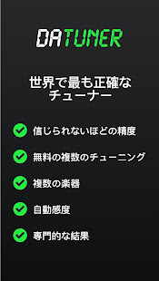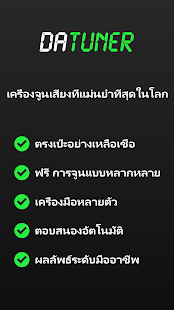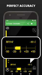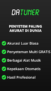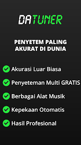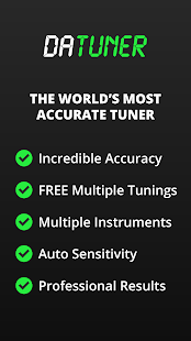 DaTuner mengubah frekuensi dasar ke nada terdekat dan error dalam cent untuk penyetelan yang cepat dan mudah pada gitar, ukelele, biola, bass, cello, mandolin, piano, harpa, saksofon, timing belt Ducati, harmonika, kazoo, semuanya.