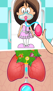 • Paru-paru: Gunakan alat bantu pernapasan, bunuh bakteri di permainan mini Archer, dan pilih inhaler untuk melegakan saluran pernapasan.