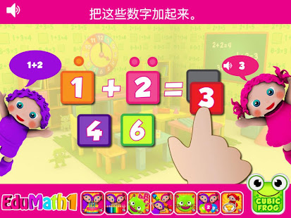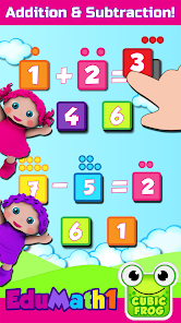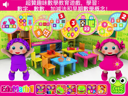 Pengenalan matematika cepat untuk anak-anak! EduMath 1 adalah kumpulan game matematika keren untuk anak-anak yang membantu mereka belajar matematika taman kanak-kanak dengan cara yang menghibur! Di kelas matematika ini mereka akan belajar angka 0-30, berhitung, mengurutkan, ganjil/genap, penjumlahan & pengurangan!