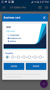 A program that creates a quick CV, control its content, edit and modify it and share it