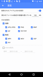 Untuk gambar dan video, ada 4 opsi yang tersedia di Pengaturan: Hanya menampilkan item yang dihapus, memfilter file berdasarkan ukuran, jenis file, dan tanggal.