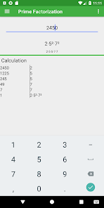 You can use this app to calculate all the prime factors of any number. Enter the number in the input and the prime factors will be calculated automatically. The app shows all the factors separate (2·2·2·7) and with powers (2³·7). The app also shows all division steps.