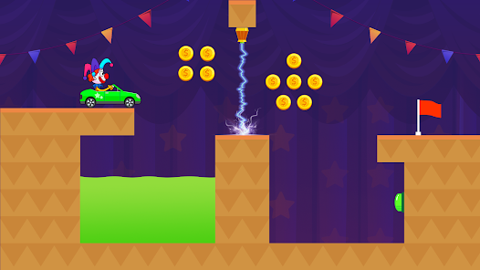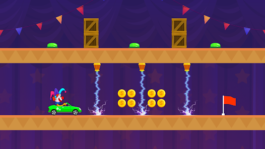 • Saat mobil dan badut mencapai garis finish, kamu menang.