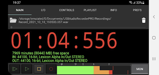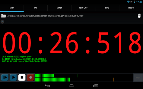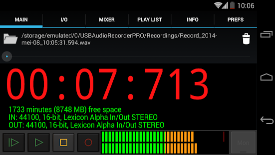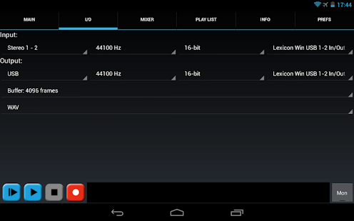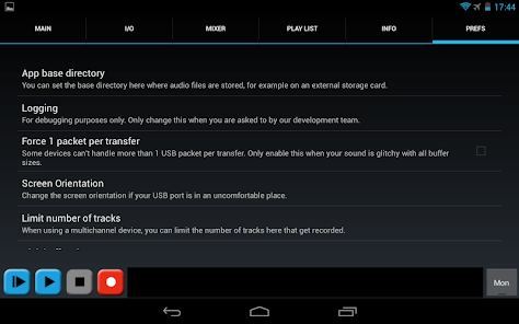 Rekam dan putar audio dalam kualitas tinggi dari antarmuka audio USB! Peringatan: ini bukan driver generik, Anda hanya dapat memutar dan merekam dari dalam aplikasi ini. Perangkat audio USB Anda tidak dapat digunakan dengan aplikasi lain!
