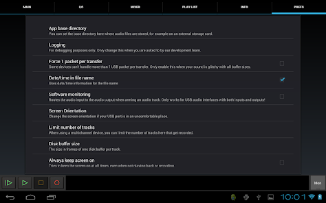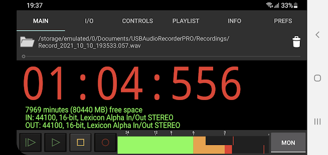 • Level meter untuk pemutaran dan perekaman dengan penahan puncak untuk melihat apa puncak paling keras Anda (ketuk pada pengukur level untuk menghapus)