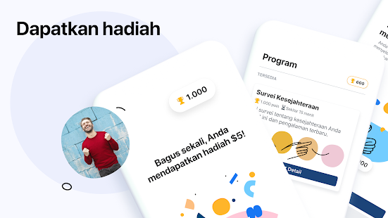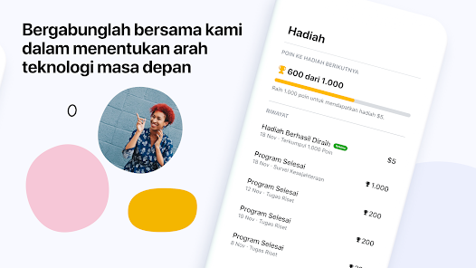 • Raih poin dan hadiah - Dapatkan hadiah dengan berpartisipasi dalam program seperti survei, tugas, dan riset.