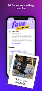Beli dan jual merchandise buatan penggemar melalui Fave Marketplace. Dukungan ini akan memungkinkan penggemar dan fandom untuk terus menciptakan barang-barang keren yang dapat dikumpulkan dan direpresentasi oleh fandom.