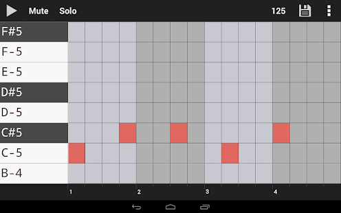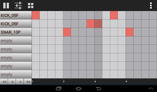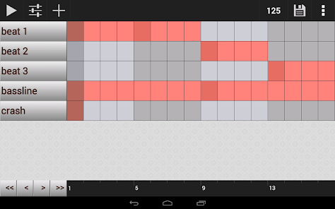 Setiap pola mesin drum memiliki sequencer step 8 channel dengan piano roll. Anda dapat mengubah nada dan kecepatan nada, kecepatan dan panning saluran, membisukan saluran. Tanda tangan waktu default dari pola drum adalah 4/4, tetapi dimungkinkan untuk mengubah pengaturan grid untuk mendukung 3/4, 6/8, 9/8 ...