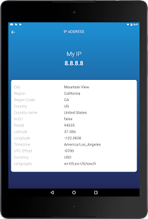 Apa alamat IP saya? Di aplikasi kami, Anda dapat memperoleh informasi tentang lintang, bujur, zona waktu, negara, kota, dan penyedia internet.