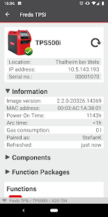 The Device Information area provides a comprehensive overview of all of the main configuration data, components, and available function packages. From there, you can also access the SmartManager (system website) for the connected welding system quickly and easily. The keyless function allows authorized users to log in to and out of the system without an NFC card.
