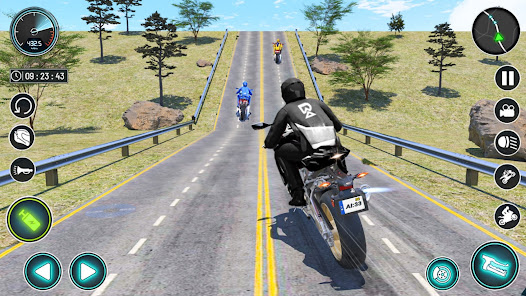 Berkendara dalam mode multipemain untuk mengejar game balapan sepeda terbaik. Gunakan trik berkendara gila Anda dan menangkan simulator balap motor ekstrim. Rasakan fisika nyata dari balapan motor untuk menjadi pengendara sepeda cepat. Ini adalah game bersepeda gratis dengan cerita yang menarik. Pamerkan keterampilan game balap turbo Anda dan terima semua tantangan lawan sepeda motor Anda. Berikan kesempatan untuk memainkan mengemudi ekstrim ini, Anda pasti akan melupakan semua game simulator sepeda. Kendarai sepeda asli Anda di jalan raya tanpa akhir, lewati lawan Anda, dan beli sepeda baru untuk mengalahkan pengendara ekstrem.