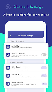 Pasangan Bluetooth membantu Anda terhubung secara otomatis ke perangkat Bluetooth yang paling sering Anda gunakan. Menghemat waktu dalam menghubungkan perangkat Bluetooth Anda. Kelola semua perangkat pasangan Anda dan pasangan yang tidak adil, yang tidak lagi Anda perlukan. Anda juga dapat memfilter pencarian untuk perangkat Bluetooth.