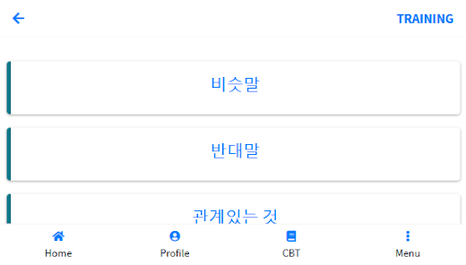 fitur ini berisi kuis kosa kata untuk melatih hafalan anda, terdiri dari kuis 관계 있는, 반대말, 비슷말.
