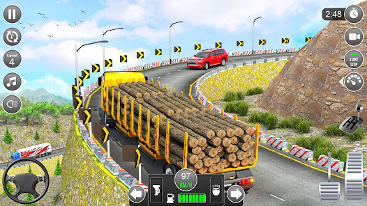 truk pengangkut kayu berat mengemudi game 3d