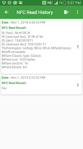 NFC app can write and read all types of data including text, url, ISBN, product, contact, calendar, email, location, and Wi-Fi credentials from all types of the NFC, RF cards. And also you can share and search the result with in app.
