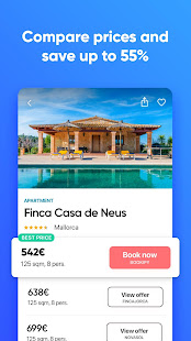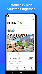 Dari lebih dari 15 juta penawaran temukan kondominium, kabin, vila, rumah besar, berkemah atau persewaan lain yang Anda cari. Aplikasi Android Holidu membandingkan Anda dengan lebih dari 600 situs perjalanan termasuk semua situs utama untuk menemukan persewaan liburan yang sempurna. Aplikasi ini memungkinkan untuk pencarian tema khusus seperti perjalanan ski, liburan pantai, liburan keluarga.
