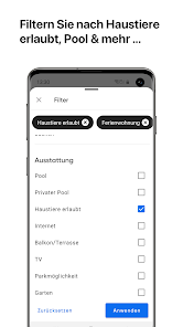 - Filter sesuka Anda: dengan kolam renang, wifi, balkon, persewaan yang memungkinkan hewan peliharaan atau anjing