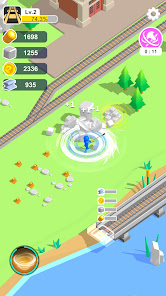 Kamu perlu mengumpulkan kayu dan batu, menyebarkan rel kereta api. Setelah terhubung ke rel, kereta akan mulai melintas dan menabrak penumpang. Anda bisa mendapatkan penghasilan. Untuk membangun kereta api yang megah.