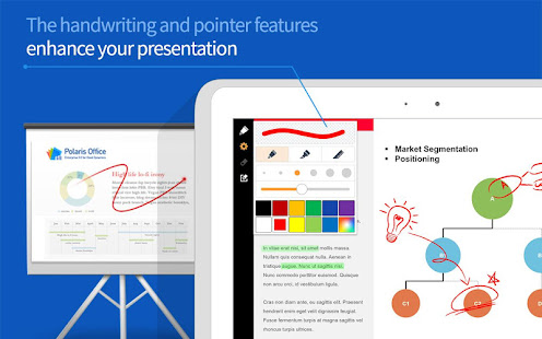 Lihat Microsoft Office dokumen / View .pdf dan .hwp file / Dukungan modus / Halaman efek transisi animasi Quick Scroll / Slideshow untuk menampilkan slide / Pointer dan menggambar untuk slideshow