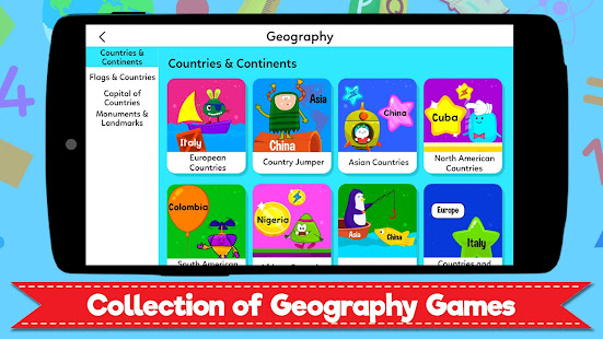 Pelajari segala sesuatu tentang geografi dengan 15+ game geografi. Termasuk pelajaran tentang Negara, Benua, Bendera, Ibukota Negara, Monumen & Tengara.