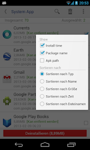 • Pengguna dapat melakukan kustomisasi [Install time] [Package name] [Apk path] untuk ditunjukkan ke daftar;