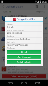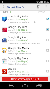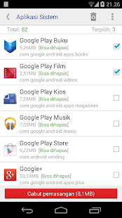 Catatan: melepas aplikasi sistim memerlukan ijin root, dan kami tidak menyediakan metode rooting.