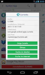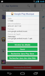 • Menunjukkan detail aplikasi: ukuran, waktu pemasangan, paket, jalur apk.