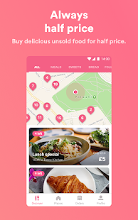 Restaurants, grocery stores, bakeries, and cafes upload their surplus food at specific times, often between 2 pm and 6 pm.