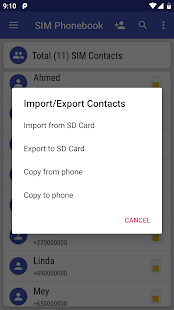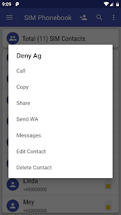 "Buku Telepon SIM" dapat membaca semua nomor telepon yang tersimpan di dalam kartu SIM! Anda juga dapat menambahkan nomor baru, mengedit nomor yang sudah ada, menghapus nomor, mengekspornya ke kartu SD untuk menyimpanya dan mengimpor nomor dari kartu SD ke dalam kartu sim dengan sangat mudah!