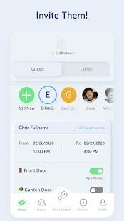 Use the app to easily invite your family, friends, and guests. You can set up a date and time as you wish. No need to share your pin code anymore.