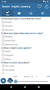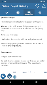 "English Listening & Speaking" is a free application for listening to speak English. In "English Listening & Speaking" all the articles are categorized and divided the level, which means that you can easily start your listening English practice from the level you’re comfortable in and work your way through the more advanced level articles and conversations. With preset scenarios that cover almost all the aspects of the daily lives, you will soon find the results of listening English practice effectively affecting your English listening and speaking skills.