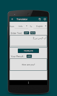 - Copy and Paste features. You can copy the translated text Urdu, Hindi or English, and use it anywhere you want.