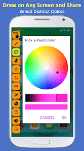 Draw di Semua Layar dan Bagikan aplikasi berfungsi sebagai papan gambar. yang memungkinkan Anda untuk menggambar di mana saja (aplikasi atau game lain) di layar perangkat Anda saat run-time.