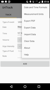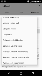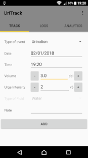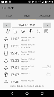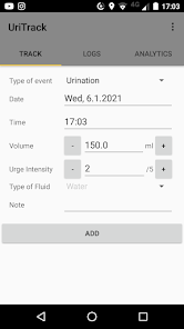 UriTrack is an app which enables you to log your urinary events (urination, leaks, urges, cathether use) as well as your fluid intake and notes. This is a replacement for a voiding log or a voiding diary that is often used in diagnostics of various urinary problems.