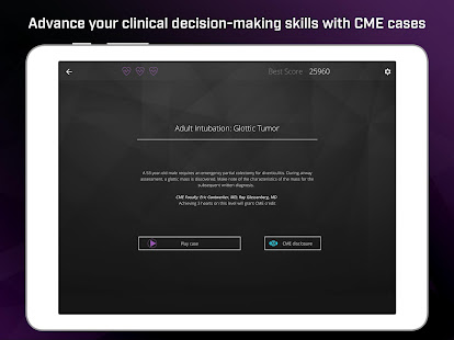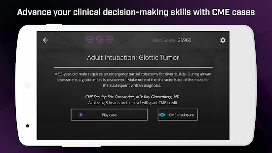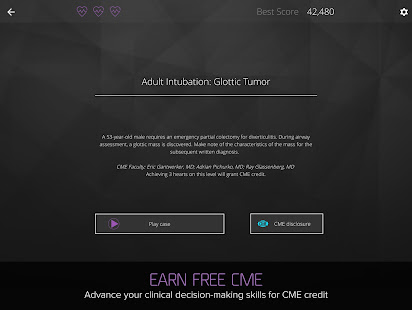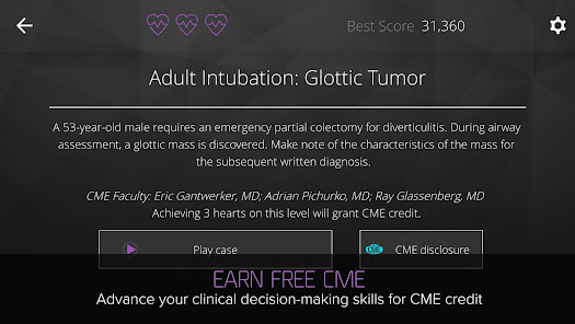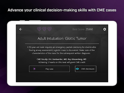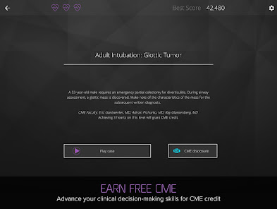 - Dapatkan kredit Pendidikan Kedokteran Berkelanjutan (CME) saat Anda bermain melalui kasus